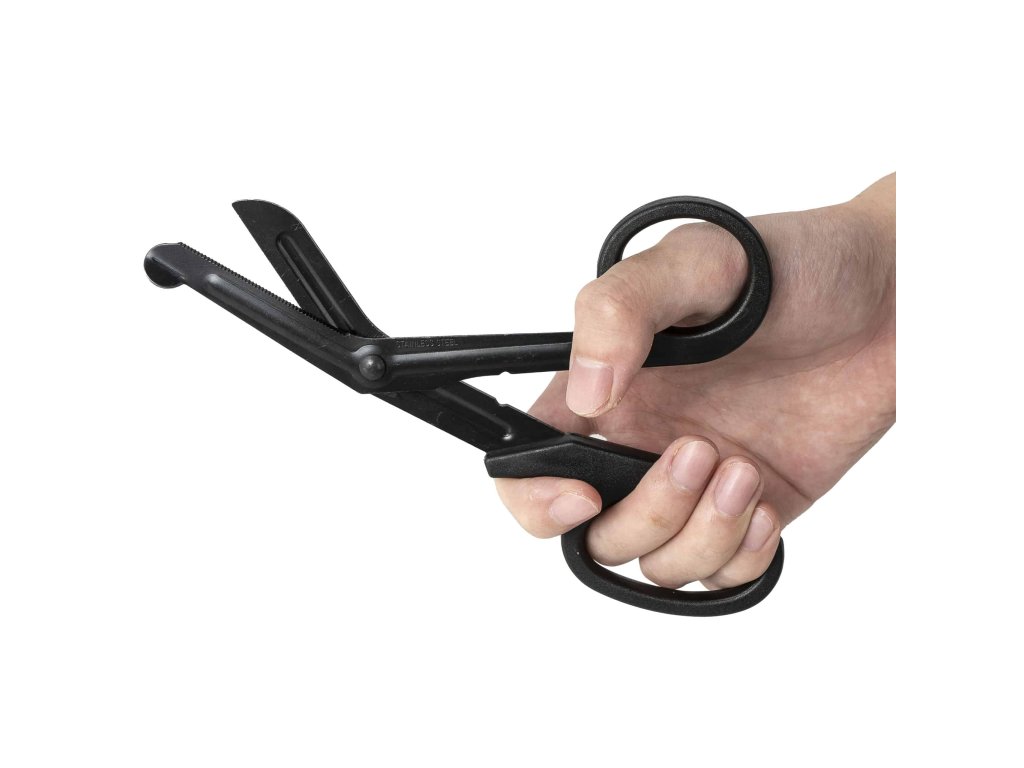 Mikro-serrations na ostří zabraňují sklouznutí materiálu a zajišťují čistý, kontrolovaný střih i při mokrém, znečištěném či napnutém povrchu. Ergonomická rukojeť poskytuje jistý úchop i v rukavicích, takže nůžky jsou ideální pro použití v IFAKu, lékárničce, vozidle, domácnosti i profesionální záchranářské výbavě.