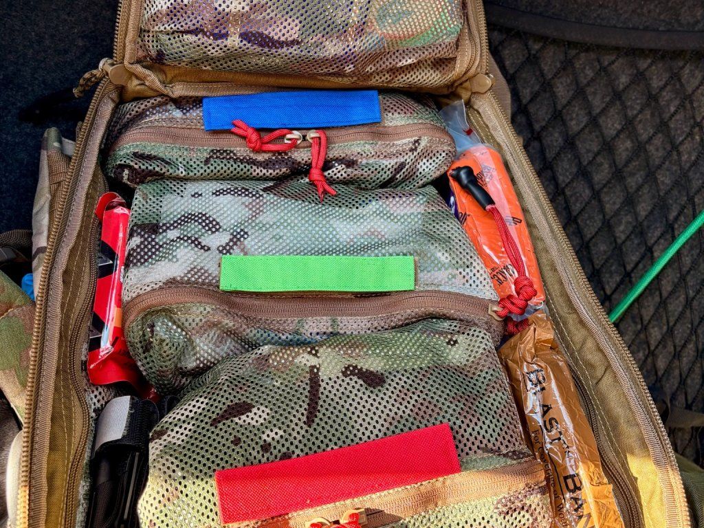 Zakázkový velcro rozlišovací panel pro barevné kódování a rychlou orientaci ve výbavě podle MARCHED (M / A / R / C / H / E / D).